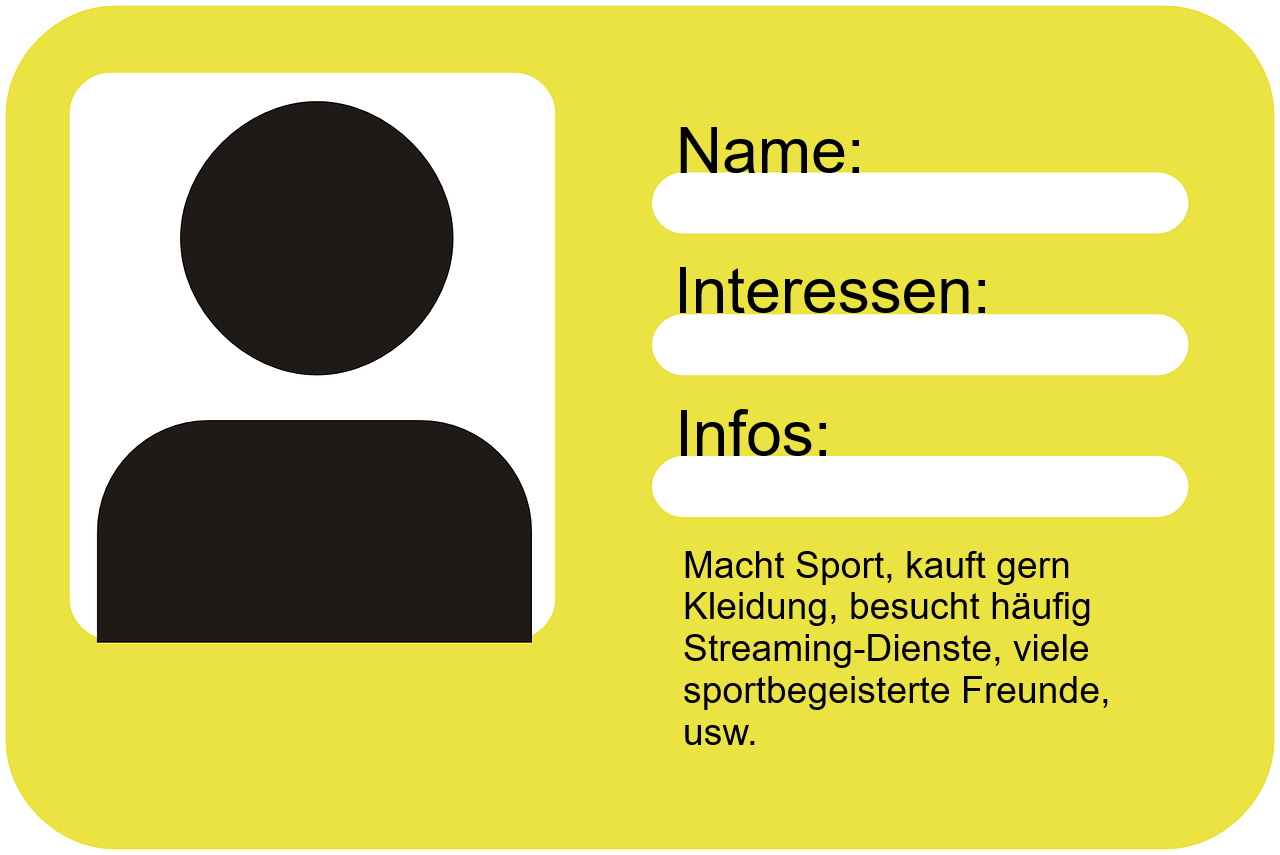 Deine Daten werden gespeichert um ein Profil von dir erstellen zu können. Eine Art Identität, die dich durch fortlaufende Datensammlung immer besser kennenlernt. Hierfür werden alle über dich in Erfahrung gebrachten Daten kombiniert. Seien es Daten an deinem Smart Phone oder am Computer. Jegliche Daten die von dir erhoben werden fließen alle in dein Profil mit ein. In deinem Profil stehen dann zum Beispiel mögliche Details wie deine Interessen, deine shopping Aktivität und sogar ganz private Dinge wie dein Beziehungsstatuts, deine Freunde oder auch öfters besuchte Orte werden versucht festzustellen.